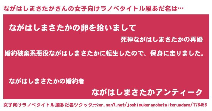 | 男性向けラノベタイトル風あだ名 | 『転生したらながはしまさたかだった件』 |