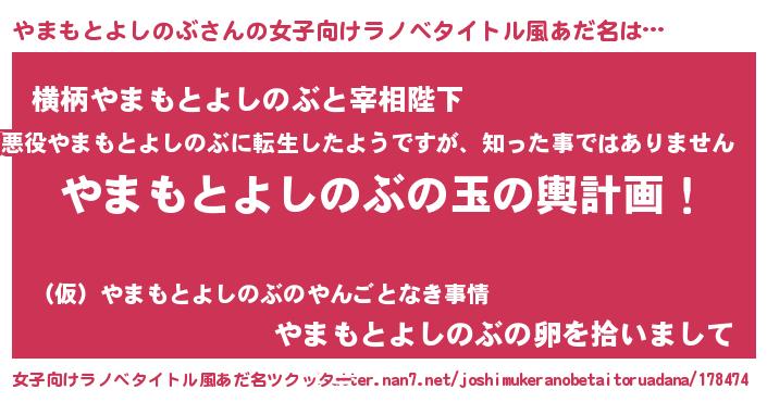 | 肩書あだ名 | 『やまもとよしのぶ大佐』 |