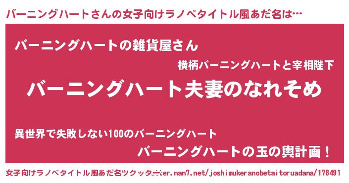| ヒーロー風カッコイイあだ名 | 『正義の使者バーニングハート』 |