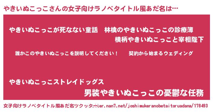 男性向けラノベタイトル風あだ名 | 『ヤキイヌコッコアートオンライン』 |