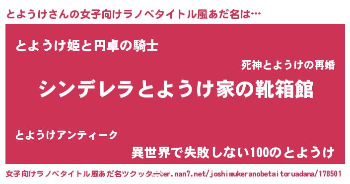| 男性向けラノベタイトル風あだ名 | 『緋弾のトヨウケ』『とようけの憂鬱』 |