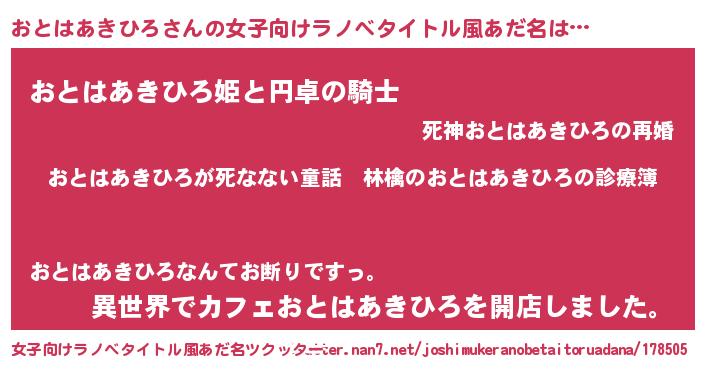 | 男性向けラノベタイトル風あだ名 | 『魔弾の王とおとはあきひろ』 |