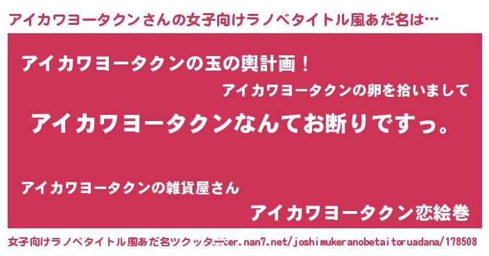 | 意味不明あだ名 | 『自称アイカワヨータクン』 |
