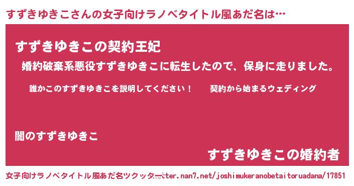| 男性向けラノベタイトル風あだ名 | 『スズキユキコアートオンライン』 |