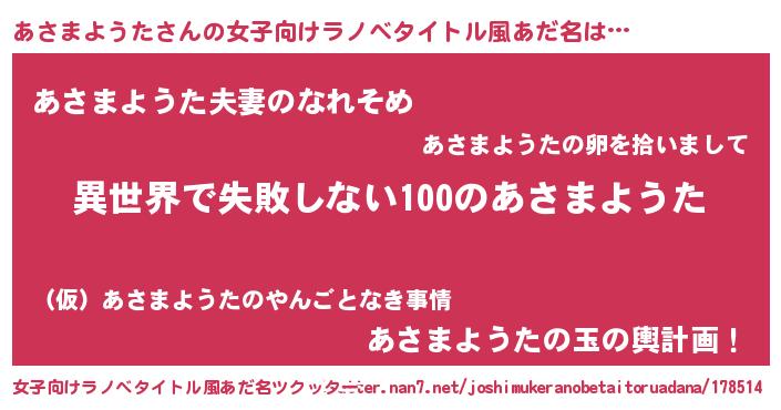 | 意味不明あだ名 | 『永久保存あさまようた』 |