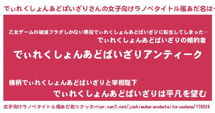 | 肩書あだ名 | 『でぃれくしょんあどばいざり総統』 |