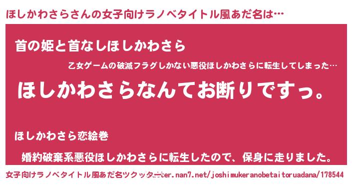 | 男性向けラノベタイトル風あだ名 | 『魔法科高校のほしかわさら』 |