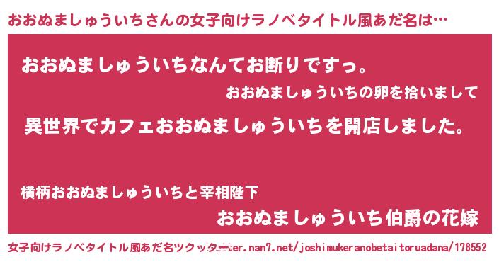 ヘコむあだ名 | 『おおぬましゅういち(笑)』『つくし』 |