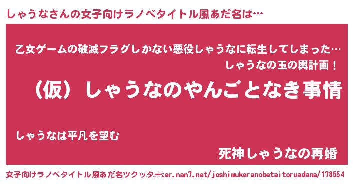 | 胡散臭い通販商品みたいなあだ名 | 『必ず成功するブレスレット…その名も「しゃうな」』 |
