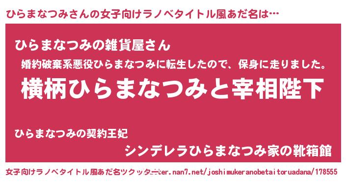 | 意味不明あだ名 | 『ひらまなつみフォーエバー』 |