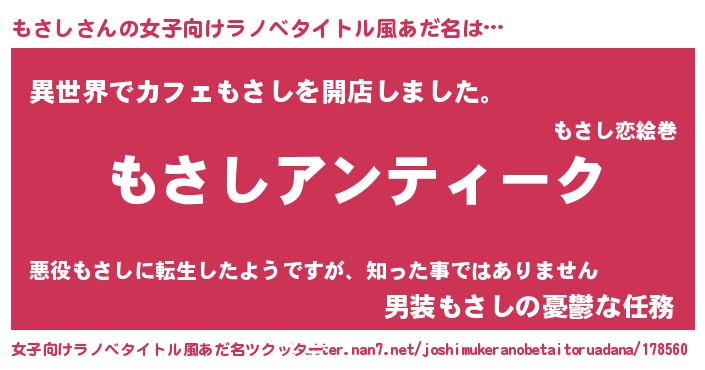 | 胡散臭い通販商品みたいなあだ名 | 『ガンによく効く高麗人参…その名も「もさし」』 |