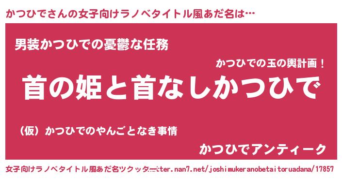 | ヘコむあだ名 | 『かつふぇ~』『かつを』『酢こんぶ』 |