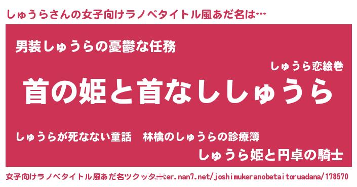 | ヘコむあだ名 | 『しゅにゅー』『しゅぷりん』『牛乳』 |