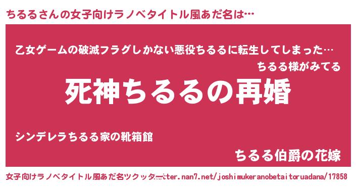 | 胡散臭い通販商品みたいなあだ名 | 『モンドセレクションを受賞した隕石のかけら…その名も「ちるる」』 |