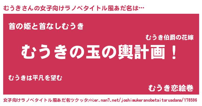 男性向けラノベタイトル風あだ名 | 『転生したらむうきだった件』 |