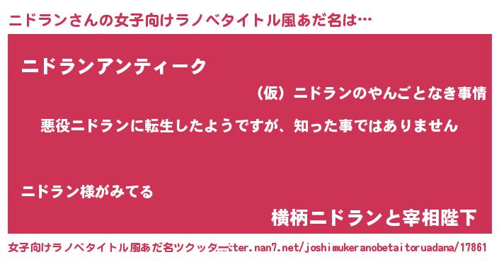 | 男性向けラノベタイトル風あだ名 | 『この素晴らしい世界にニドランを!』 |
