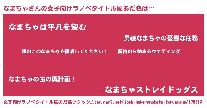 | 意味不明あだ名 | 『ペロリンなまちゃ』『自称なまちゃ』 |