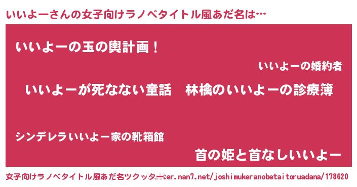 | 男性向けラノベタイトル風あだ名 | 『魔弾の王といいよー』『緋弾のイイヨー』 |