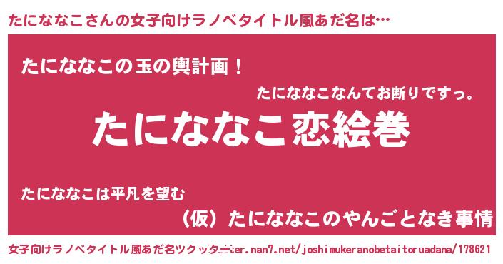 | ヒーロー風カッコイイあだ名 | 『慈愛の使者たにななこ』『暗黒騎士タニ』 |