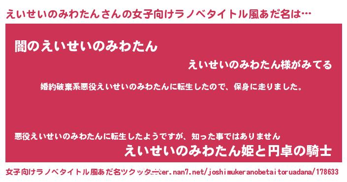 | ヒーロー風カッコイイあだ名 | 『サイバー戦士エイセイノミワタン』 |