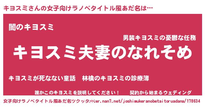 | 男性向けラノベタイトル風あだ名 | 『おまえをオタクにしてやるから、俺をキヨスミにしてくれ! 』 |