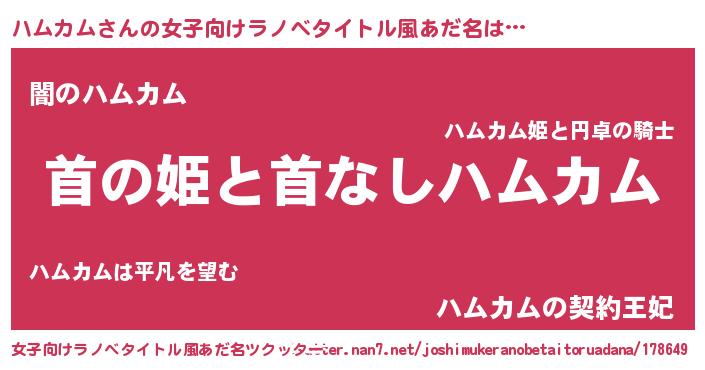 | ヘコむあだ名 | 『ハムカム(爆)』『ハムにゅー』 |