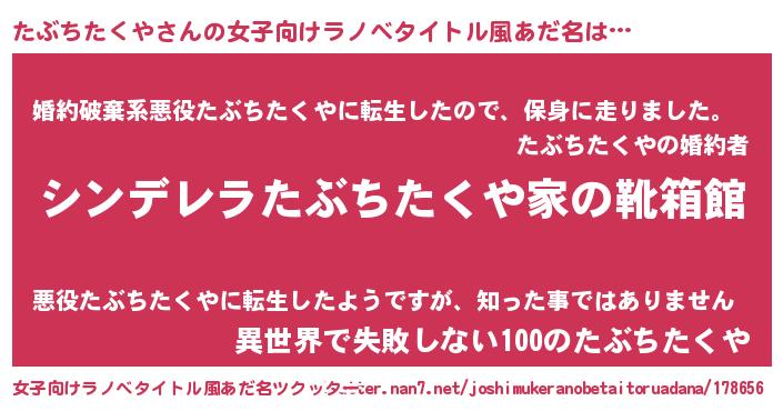 | 胡散臭い通販商品みたいなあだ名 | 『絶対に幸福をもたらす健康食品…その名も「たぶちたくや」』 |