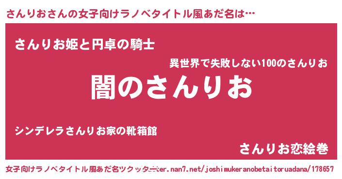 | 男性向けラノベタイトル風あだ名 | 『Re:さんりおから始める異世界生活』 |