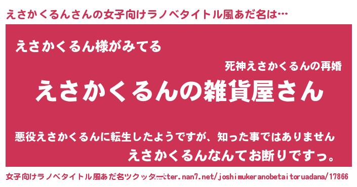 | ファンタジー風あだ名 | 『エターナルエサカクルンー』 |