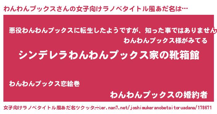 | 男性向けラノベタイトル風あだ名 | 『緋弾のワンワンプックス』 |