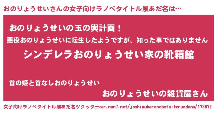 | 男性向けラノベタイトル風あだ名 | 『冴えないおのりょうせいの育てかた』 |