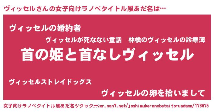 | 意味不明あだ名 | 『ヴィッセルフォーエバー』 |