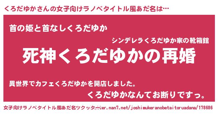 | 男性向けラノベタイトル風あだ名 | 『ノーゲーム・ノークロダユカ』 |