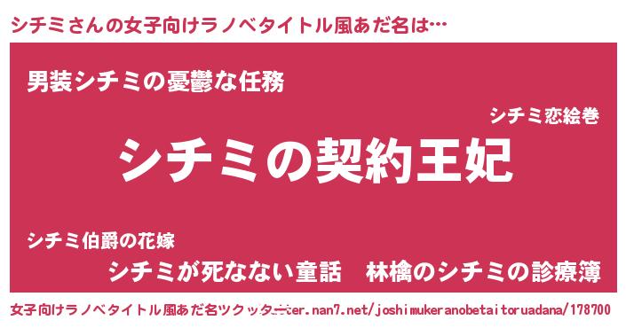 | ヘコむあだ名 | 『シチミ(小並感)』『牛乳』『シチお』 |