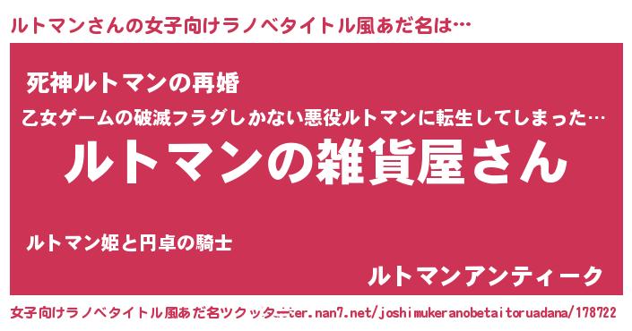 | 男性向けラノベタイトル風あだ名 | 『やはりルトマンの青春ラブコメはまちがっている 』 |