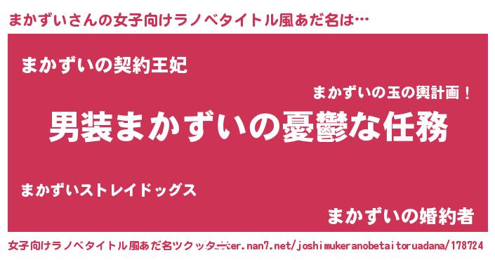 | 胡散臭い通販商品みたいなあだ名 | 『来世でも幸せになれる健康食品…その名も「まかずい」』 |