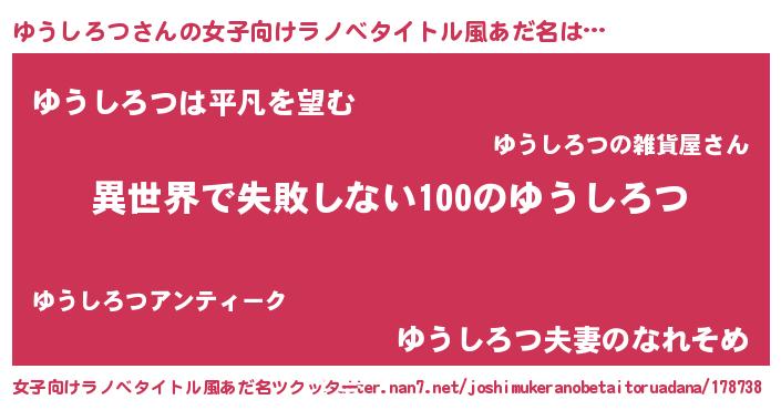| 2chまとめサイト | サイト名『ニューゆうしろつ速』 |