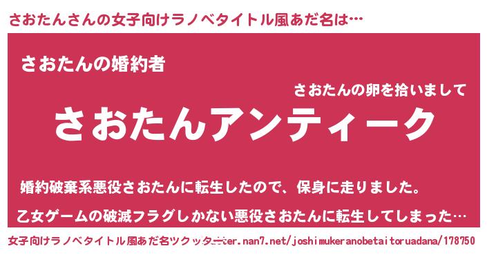 | 胡散臭い通販商品みたいなあだ名 | 『テレビで話題の高麗人参…その名も「さおたん」』 |