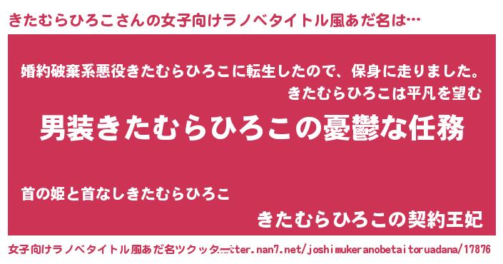 | 男性向けラノベタイトル風あだ名 | 『うちのきたむらひろこが世界を掌握している!』 |