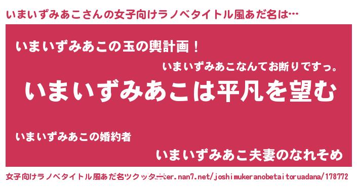 | 男性向けラノベタイトル風あだ名 | 『ダンジョンにいまいずみあこを求めるのは間違っているだろうか』 |