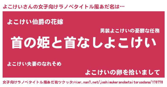 | ファンタジー風あだ名 | 『エターナルヨコケイー』『クインヨット』 |