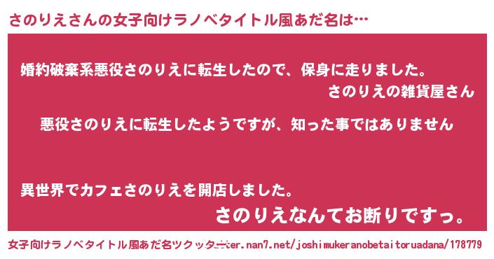 | 胡散臭い通販商品みたいなあだ名 | 『あなたにだけ特別に提供する100年もののヴィンテージワイン…その名も「さのりえ」』 |