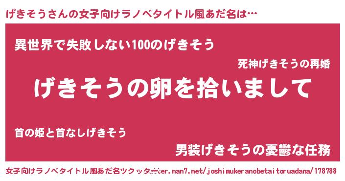 | ヘコむあだ名 | 『げきぷりん』『げきそう(笑)』 |