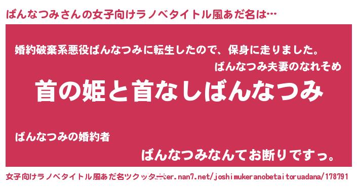| 男性向けラノベタイトル風あだ名 | 『はたらくばんなつみさま!』 |