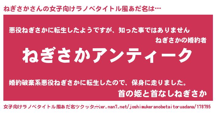 | 男性向けラノベタイトル風あだ名 | 『魔法科高校のねぎさか』 |