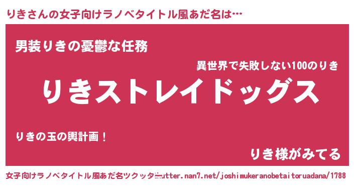 | 男性向けラノベタイトル風あだ名 | 『Re:りきから始める異世界生活』 |