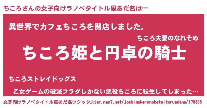 | 男性向けラノベタイトル風あだ名 | 『チコロアートオンライン』 |