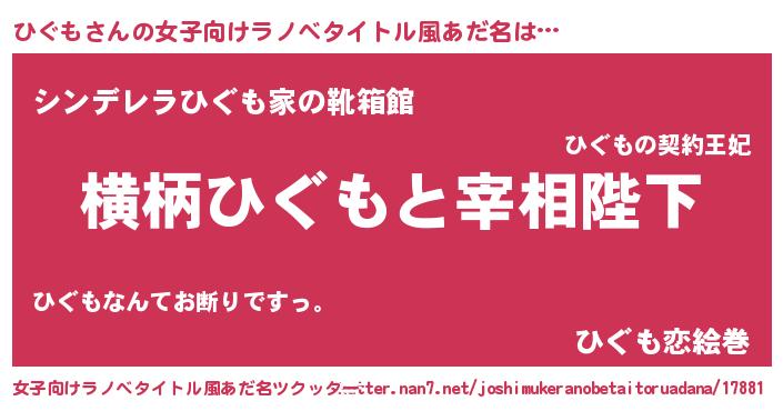 | ピコ太郎風あだ名 | 『ヒヒ太郎』『ピコヒ郎』『ヒコ六郎』 |