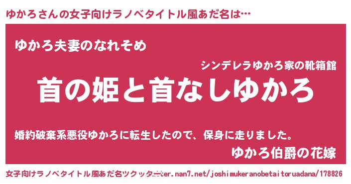 | 男性向けラノベタイトル風あだ名 | 『はたらくゆかろさま!』 |