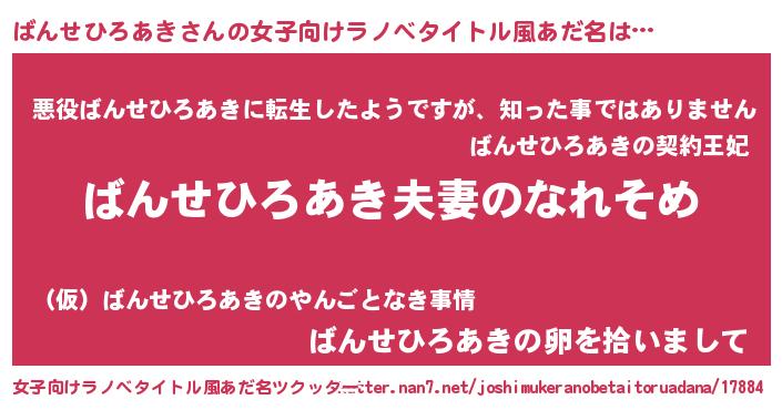 | ヘコむあだ名 | 『ばん太郎』『ばんせひろあき(笑)』 |
